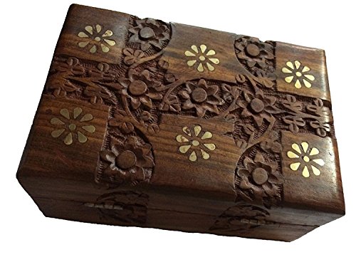 Thanks Giving Gift Christmas for Loved Ones, Handmade Wooden Jewelry Box, Brass Inlay Flower Design, Storage Box, Keepsake Organizer Box, Brown Color Jewelry Box 6 X 4 Inch