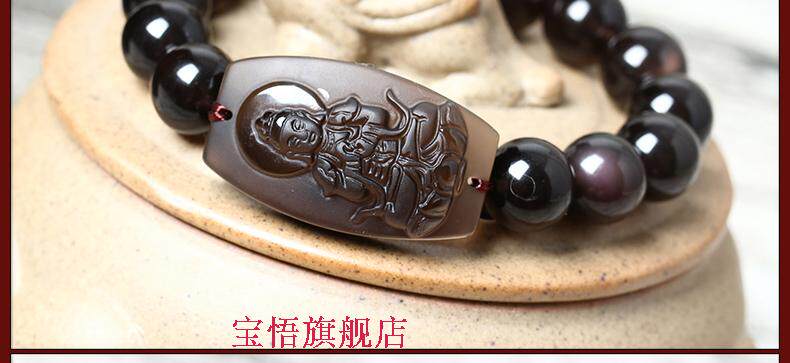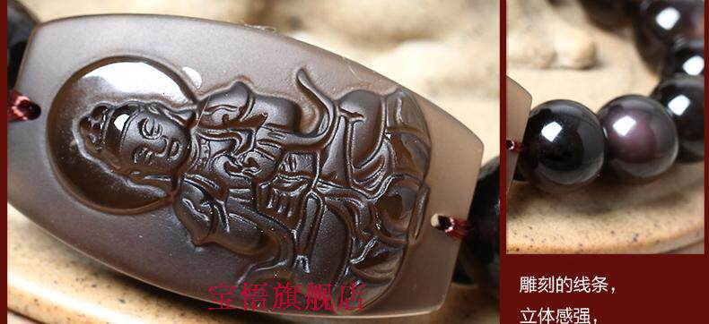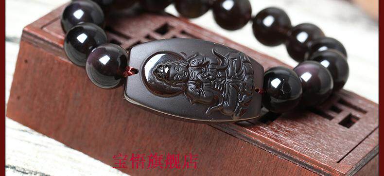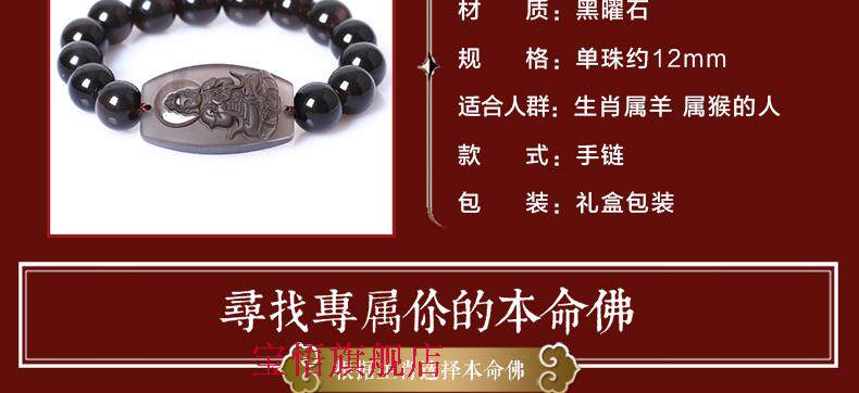 开光冰种黑曜石大日如来佛手链十二生肖属羊猴本命佛守护神手串