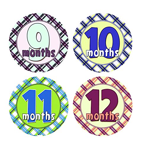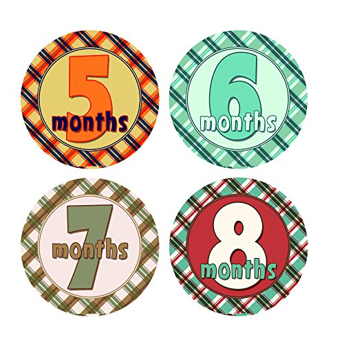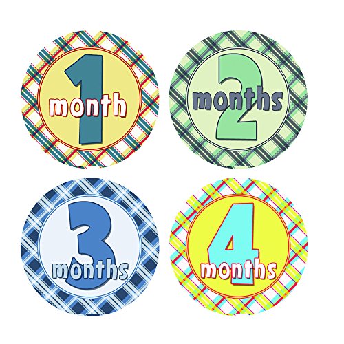 Monthly Baby Stickers Boy Plaid 1-12 Months Milestone Baby Shower Gift Bonus Sheet Included