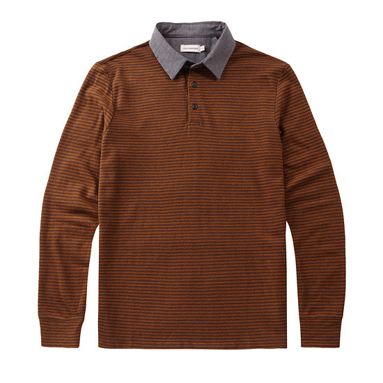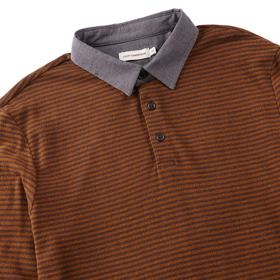 - 부드러운 터치의 배색 스트라이프 조직으로 완성한 남성 카라 티셔츠.