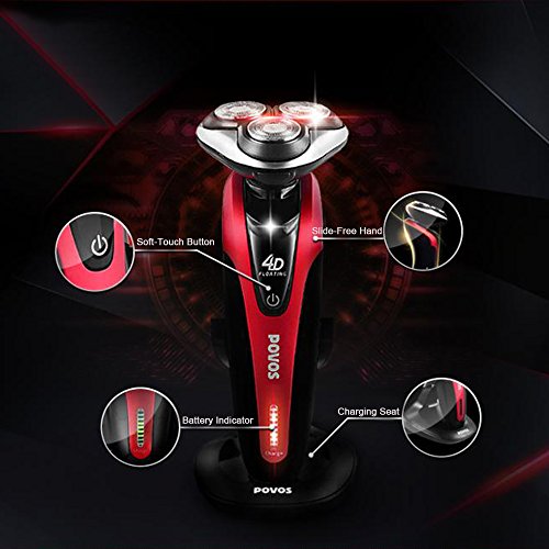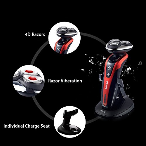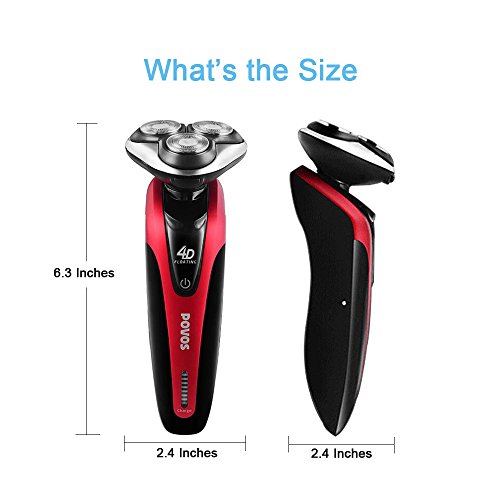 Povos 4D Electric Razor, Mens Rechargeable Rotary Shaver With LED Battery Indicator, Use Wet or Dry