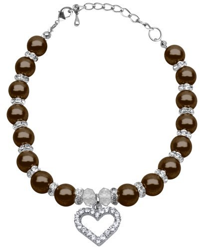 -. Title : Heart and Pearl Necklace Chocolate Lg (10-12)