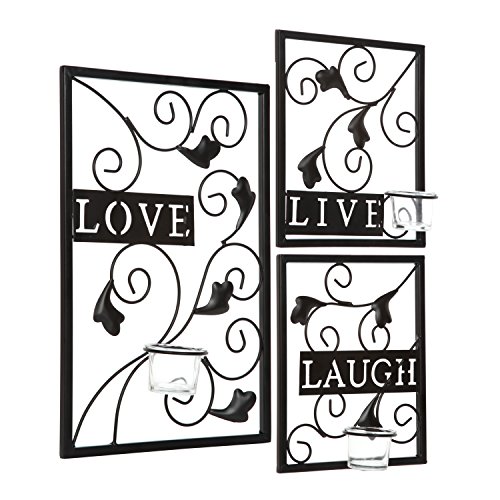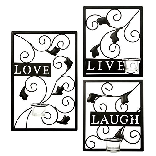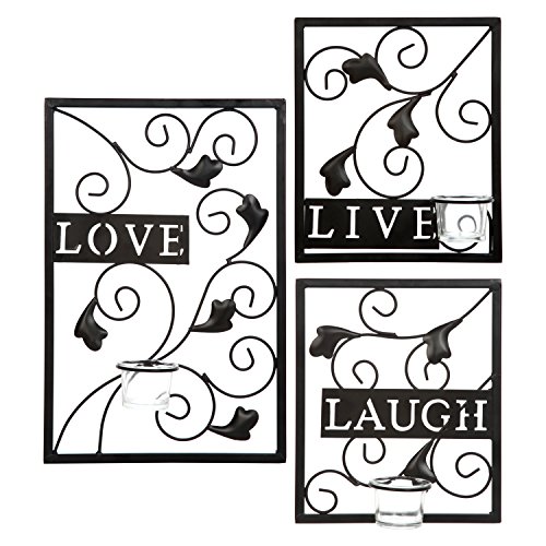 Hosley's Set of 3 Live, Laugh, Love Wall Sconce, Metal Wall Decor. Ideal Gift for Wedding, Party, Tea Lite / LED / Votive Candle Garden, Spa, Aromatherapy, Reiki, Chakra