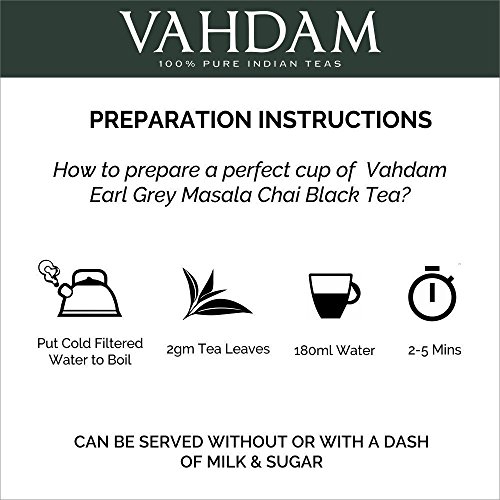 EXQUISITE & UNIQUE CHAI TEA RECIPE – Vahdam brings you a unique twist in your daily cup of earl grey brewing the flavors of masala chai. This Earl grey Tea can be served with or without milk, Hot or as Iced Tea.