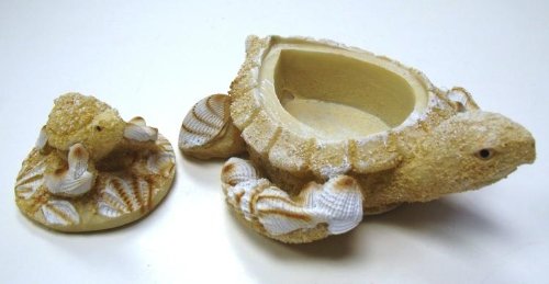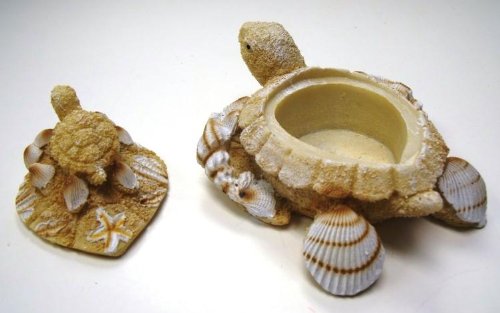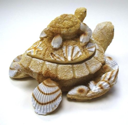 1 X Nautical Coastal Sea Turtle with Baby Sand Seashell Resin Trinket Box
