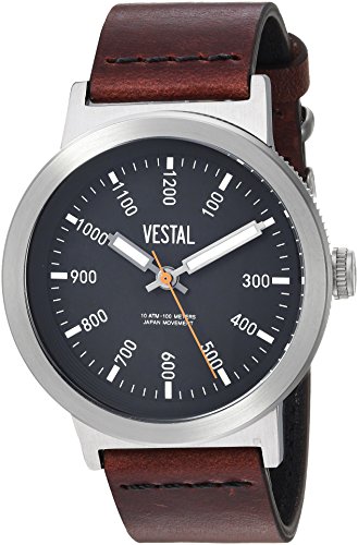-. Title : Vestal Men's 'Retrofocus' Quartz Stainless Steel and Leather Casual Watch, Color:Brown (Model: SLR443L01.3VBK)