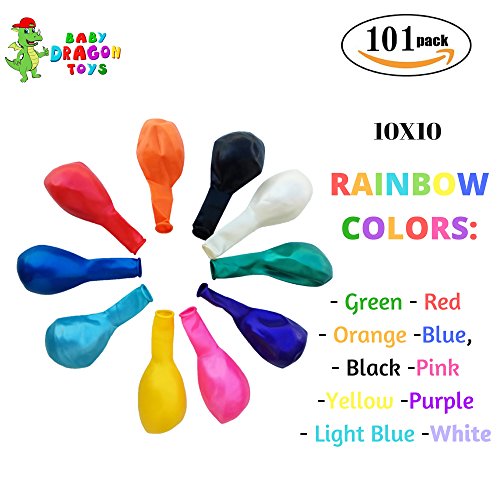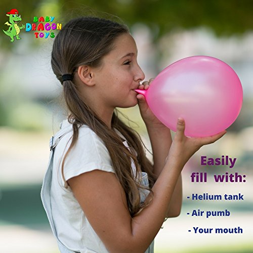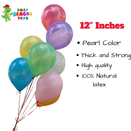 Studio : BabyDragonToys Publisher : BabyDragonToys Binding : Toy Product Description QA Q: Can the balloons can be filled with helium? A: Yes, they are suitable for helium, and recommended to be filled with no more than 12 inches with the helium. Q: are they safe around children? A: When inflated the balloons are perfectly safe as they are made of natural latex but when they are not inflated they oppose danger to children under 6 years due to the choking hazard: "CHOKING HAZARD: Children under 6 years can choke or suffocate on uninflated or broken balloons. Adult supervision required. Keep inflated balloons from children. Discard broken balloons at once." Q: are they good for birthday parties A: our balloons were made especially for parties, due to they're durability, the metallic color, and the variety of colors 0