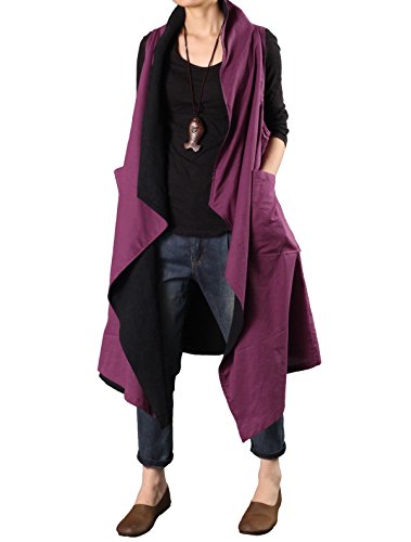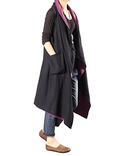 -. Feature : One SizeSize:bust:57.5'',length:35.8",sleeve cir:28.3",hem:66.9", armhole:12.5'' / The pocket position: 30cm(11.8")to the shoulder,30cm//11.8" to the hem.Weight:0.59kg//1.3lbs / Outer gray layer is middle thickness cotton linen,purple/green lining is cotton fabric, wear in two sides,open cardigan / Hand wash or machine wash,machine dryable,iron when need,hang to dry / Sold only by Minibee,never authorized to other seller,quality is guaranteed