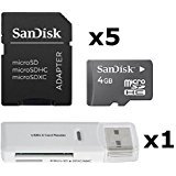 5 PACK - SanDisk 4GB MicroSD HC Memory Card SDSDQAB-004G (Bulk Packaging) LOT OF 5 with SD Adapter and SoCal Trade USB 2.0 MicoSD & SD Memory Card Reader