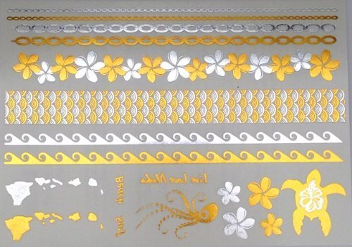 -. Title : Gold & Silver Metallic Temporary Tattoos Hawaii By Divine Planet