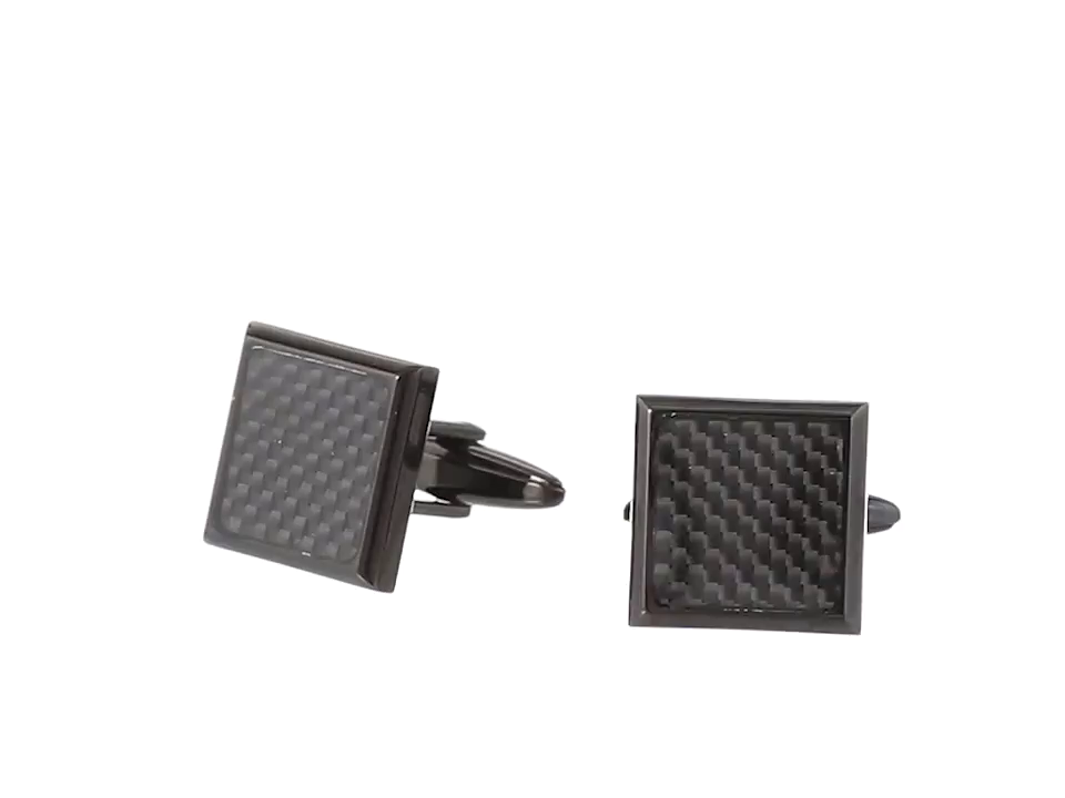 Men's Black-Tone Stainless Steel Carbon Fiber Cufflinks