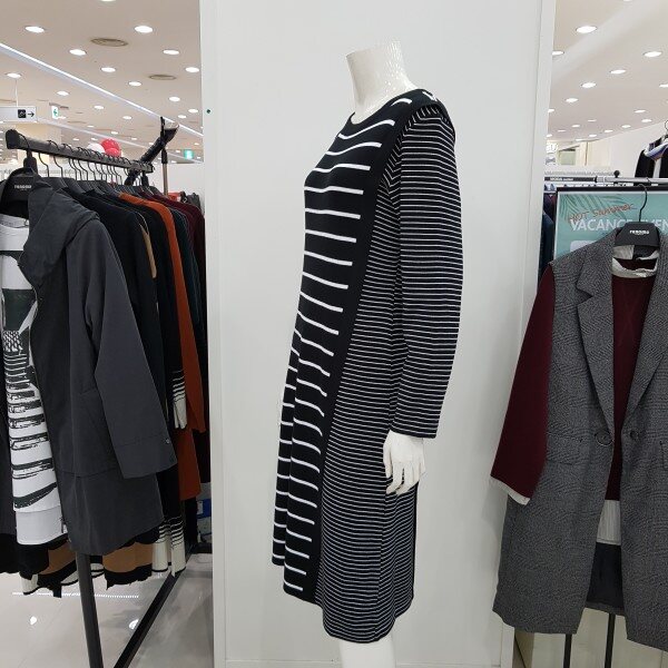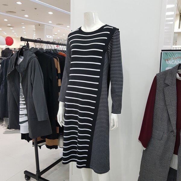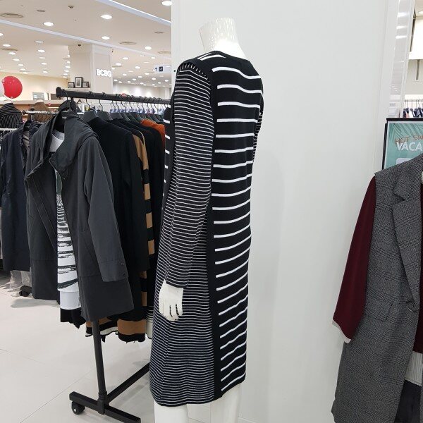 언발란스 디자인에 스트라이프 패턴이 들어가 멋스럽게 단품으로 입기 좋은 롱 기장의 원피스 입니다 화이트 스트라이프로 캐주얼하게 입기 좋은 스타일로 넉넉한 핏에 신축성 좋은 원사로 고급스럽게 내추럴 룩으로 입기 좋습니다
