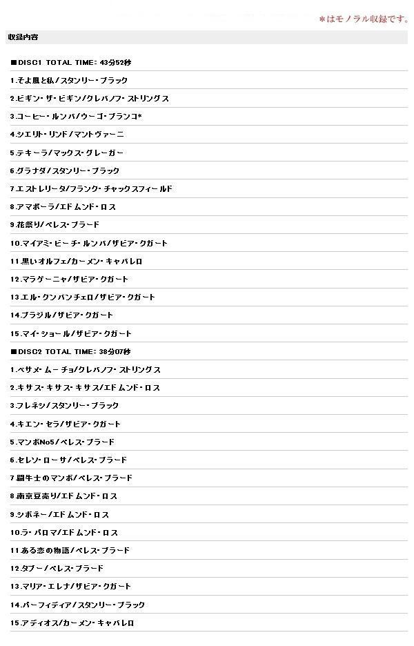 叙情と情熱!!一流アーティストが奏でる魅惑の旋律。ラテン音楽の決定版!! 製造国:日本 セット内容:CD2枚組、歌詞カード ※サプライヤー直送品【商品名】魅惑のラテン&マンボ ベスト・コレクション30 CD2枚組 WCD-637