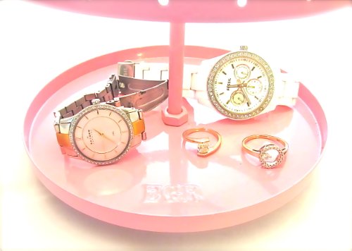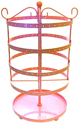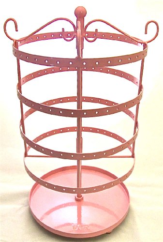Earring Go Round Spinning Jewelry Storage Stand with Tray, Large, Pink Metal