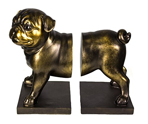 Sagebrook Home 11206 S/2 Pug Dog Bookends, 5" x 9.25" x 8", Copper