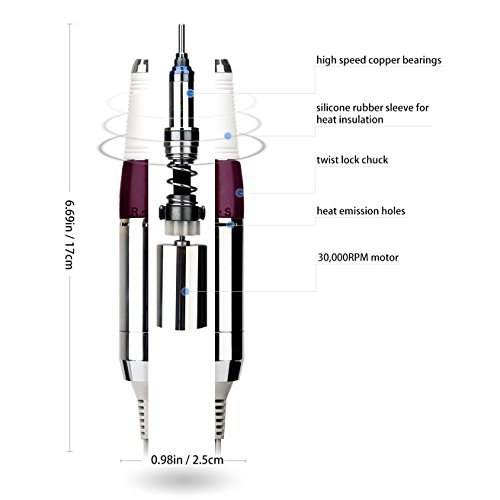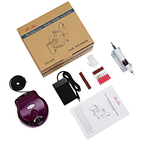 3. What's the frequence of using it? -The machine cannot be overused it too long time, shall be used intermittently and clear the dust after use,also do not touch it by bare hand after use and just keep it for natural cooling for a while. -The handpiece's intermittent life: 600hours and shall be well taken care and maintenance. Please use Nail Dust Collector(search B00E1AUCA8) to clear nail dust. 4.Where to use it? -Available for home, office, on travel or business trip with 110V electricity. 5.What's the package includes? 1xNail Drill 1xHandpiece 1x Cradle 1xFoot pedal 6xMetal Grinding Bits 26x Sanding Bands 1xUser Manual 6.More inquiry about it? -Contact us freely now! No more doubts and hesitations, just add it into cart to start your nails art journey!