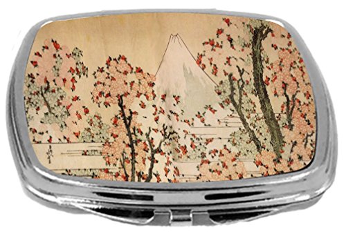 Rikki Knight Compact Mirror, Katsushika Hokusai Art Mount Fuji Behind Cherry Trees, 3 Ounce