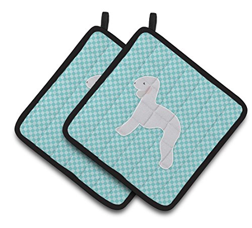 Caroline's Treasures Bedlington Terrier Checkerboard Blue Pair of Pot Holders BB3694PTHD, 7.5HX7.5W, Multicolor