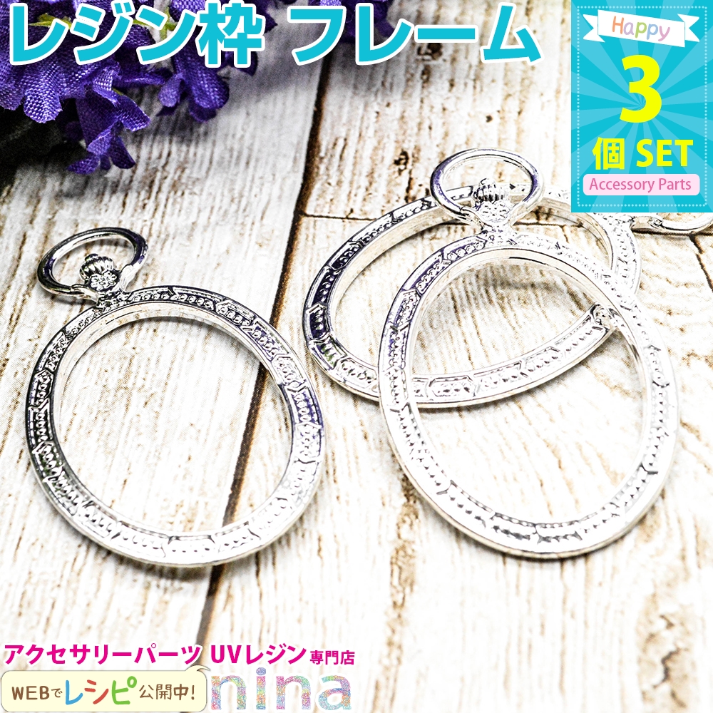 ■商品名:レジン枠 フレーム シルバー 楕円 懐中時計 3個セット