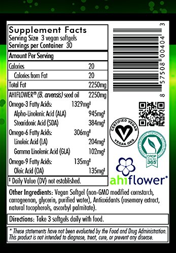 ENHANCE OMEGA 3 INTAKE - Ahiflower oil is the richest, most effective plant sourced of Omega 3. It also has up to a 400% greater EPA conversion than flaxseed oil.