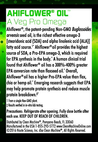 Ahiflower, the patent-pending, Non-GMO Buglossoides arvensis seed oil, is the richest, most effective omega-3 (stearidonic acid (SDA) and alpha linolenic acid (ALA)) fatty acid source (from a single, non-GMO plant). Ahiflower oil provides the highest source of SDA, a ProEPA omega-3, which is required for EPA synthesis in the body. A human clinical trial found that Ahiflower has a 300%-400% greater EPA conversion rate than flaxseed oil. Overall, Ahiflower has a higher EPA value than flax, chia or hemp oil. Emerging research suggests that EPA may help promote protein synthesis and reduce muscle protein breakdown. (These statements have not been evaluated by the Food and Drug Administration. This product is not intended to diagnose, treat, cure, or prevent any disease.Feature