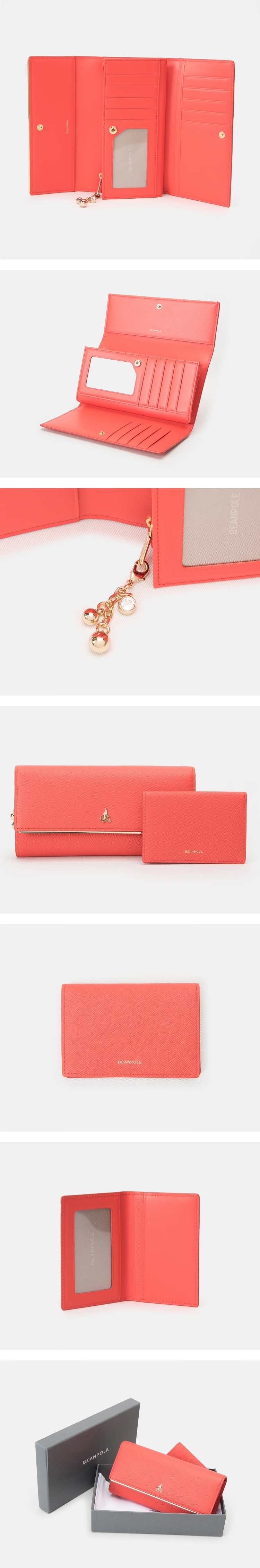 빈폴액세서리의 루시 3단 장지갑입니다.빈폴의 상징인 신사 장식과 바 장식으로 모던하면서도 엣지있는 디자인의 루시 라인입니다.탈 부착이 가능한 참장식이 구성되어 있어 다양한 느낌으로 연출 할 수 있는 전 연령대가 선호하는 아이템입니다.사이즈: 17.6*9.3cm(197g).제품설명: 지폐칸 1 / 카드칸 9 / 오픈칸 2 / 필름칸 1 / 동전칸 1 / 탈착 카드홀더 1(카드칸 3).