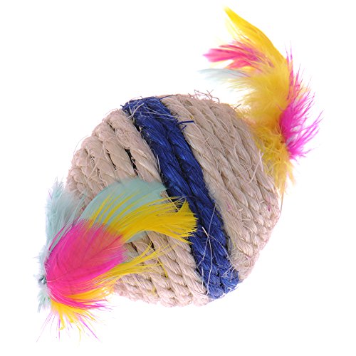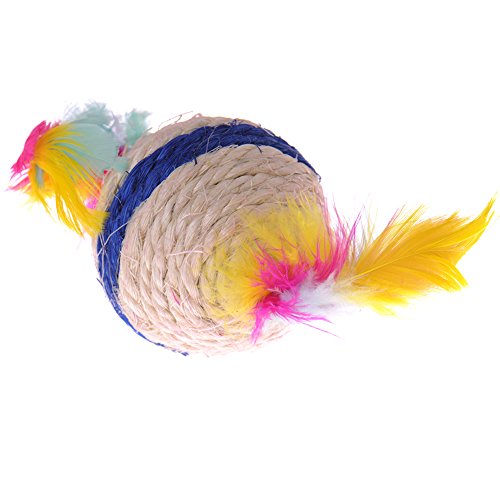 (JJ Store)/Pet Supplies/Toys/DIRECT FROM USA/JJ s tore 5.5cm Pet Cat Kitten Teaser Playing Chew Cute Toys Feather Sisal Rope Ball Random Color