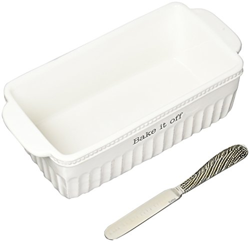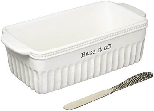 Mud Pie 4801019 Bake If Off Ceramic Loaf Pan, White