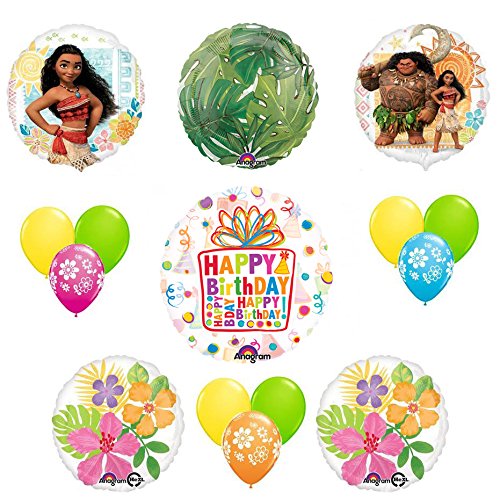 -. Feature : (1) 26 inch Birthday Party Present See-Thru Balloon / (2) 18 inch Double Sided Moana Foil Balloon / (2) 18 inch Hawaiian Foil Balloon and (1) 18 See-Thru Island Palm Foil / (3) 11 inch Flowers All Around P.R.Int Latex Balloons / (6) 11 inch Latex Balloons 3- Lime Green and 3- Yellow
