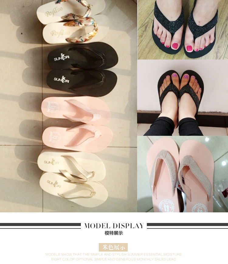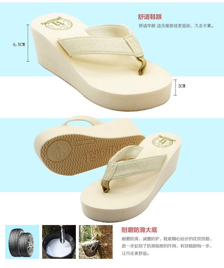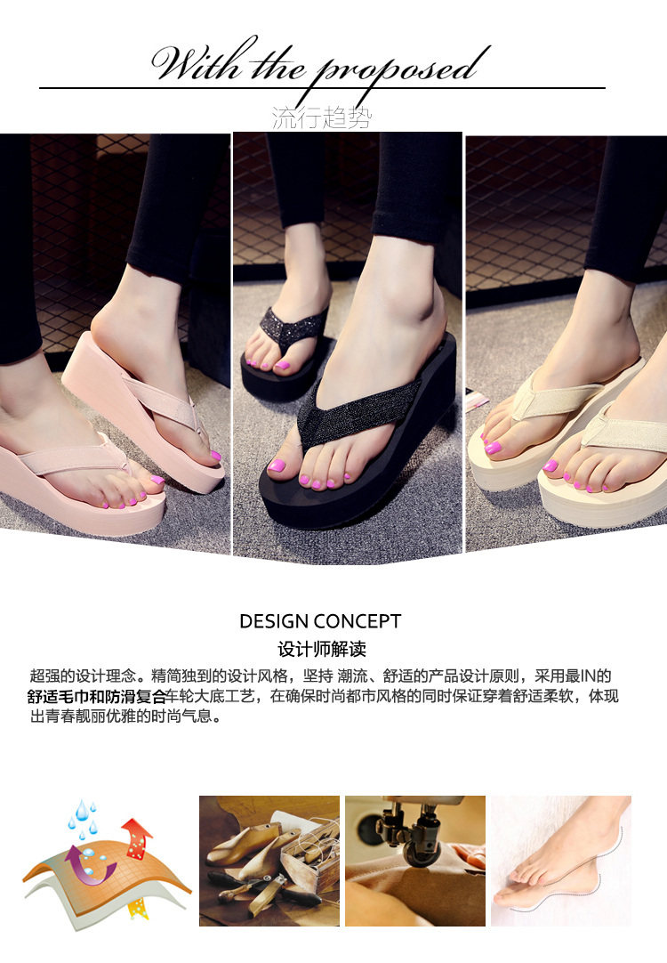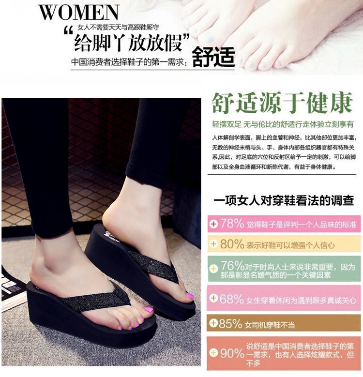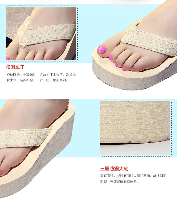 高跟人字拖女韩版沙滩鞋女夏厚底坡跟凉拖防水台防滑拖鞋学生凉鞋