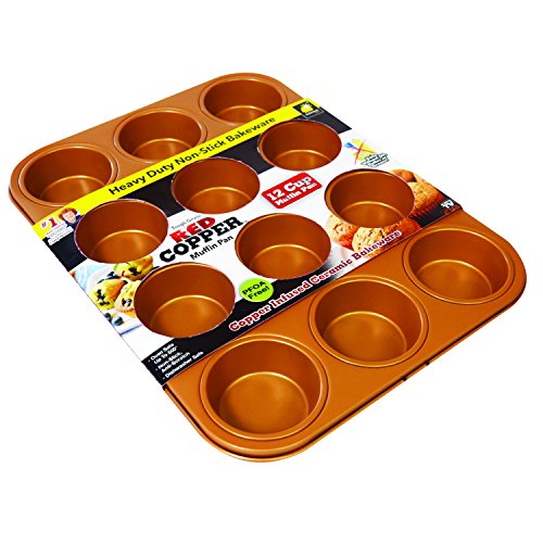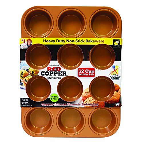 Durable nonstick bakeware. Preventing a crumbling muffin mess is easy with the Red Copper Muffin Pan. The copper infused ceramic bakeware has a nonstick and scratch-resistant coating. There's no need to line muffin cups with paper liners. Using other muffin baking pans causes the muffin top to stick to the pan. Not with Red Copper! This non-stick muffin pan doesn't require added oil, butter, or grease. Everything slides right out! Red Copper Muffin Pan is PFOA-free so harmful chemicals won't fake off into your food when cooking at high temperatures. And the pan is oven-safe to 500°F. More than muffins. Use Red Copper Muffin Pan for an easy, nonstick solution to muffins, cupcakes, mini muffin meatloaves, egg casseroles, Shepard's pie, zucchini loaves, and more. This your muffin tin, cupcake pan, and muffin egg pan! Good to know. Red Copper Muffin Pan requires seasoning prior to first use. Instructions are included with each pan. Additional seasoning may be required throughout the life of the pan to prevent the nonstick coating from diminishing. Although the muffin tin is dishwasher safe, hand wash is recommended. Includes 1 Red Copper Muffin Pan. Packaging may vary. Item may not ship in retail packaging. Red Copper Muffin Pan is the easy, nonstick way to make muffins, cupcakes, and more! 0 |