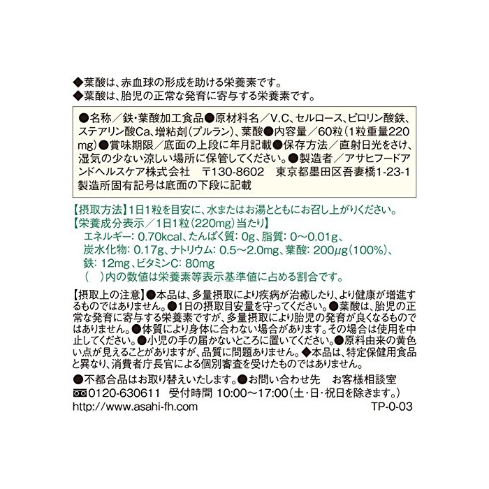 ?養成分 : 熱量 0.70 kcal、たんぱく質 0 g、脂質 0~0.01 g、炭水化物 0.17 g、ナトリウム 0.5~2.0 mg、葉酸 200μg、? 12mg、ビタミンC 80 mg