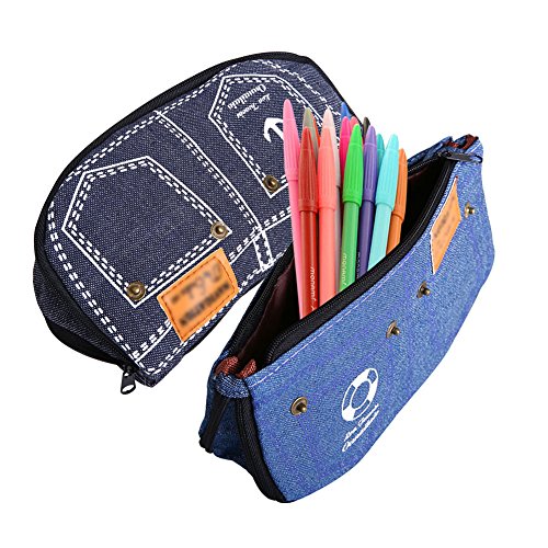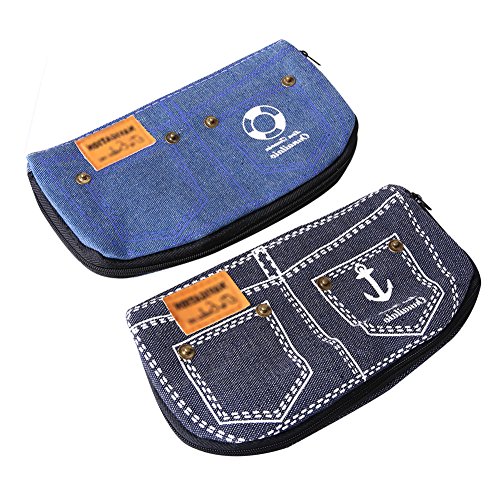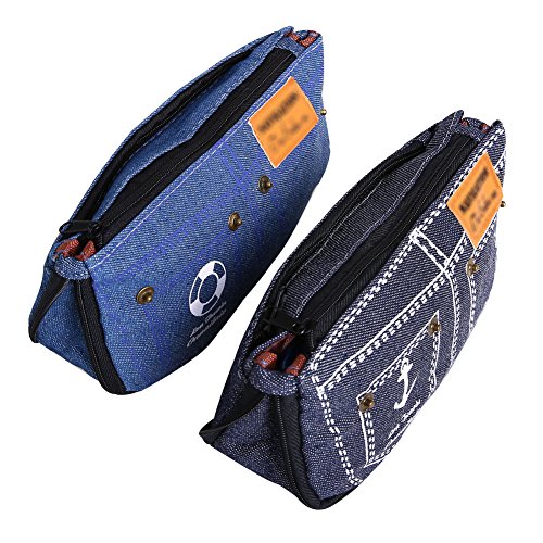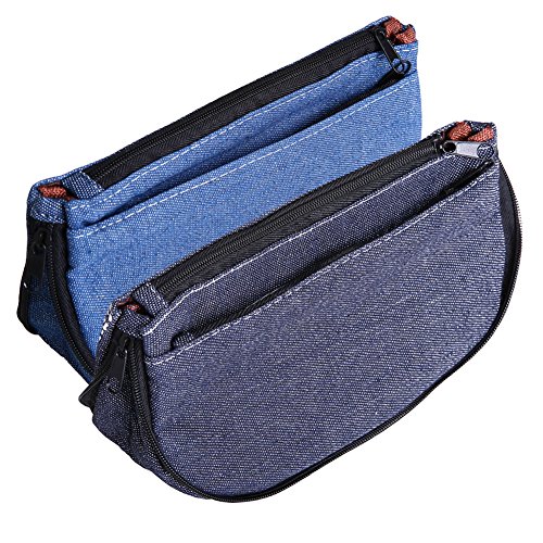 IDOMIK Pencil Case Pouch Pen Bag Brush Holders Cosmetic Bags Zippered Blue Denim Pock for Boys Girls Creative Cute Jean Fabric 2 Pack (Denim (2 pack))