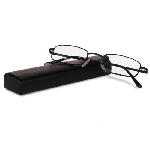Classic Spring Hinged Reading Glass with Leather Case (Black +2.25)