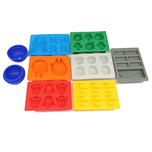 COLOR---8 Different Colored Silicone Trays with Different Cool Shapes and Sizes.The Star Wars Character Molds Liven Up Gatherings and are Sure to Bring a Smile to the Face of any Star Wars Fan.