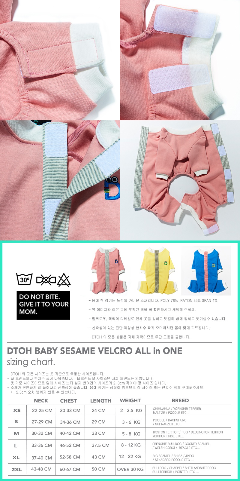 찍찍이 여밈 디테일로 된 디투에이치의 베이비 올인원이 해결해 드립니다.