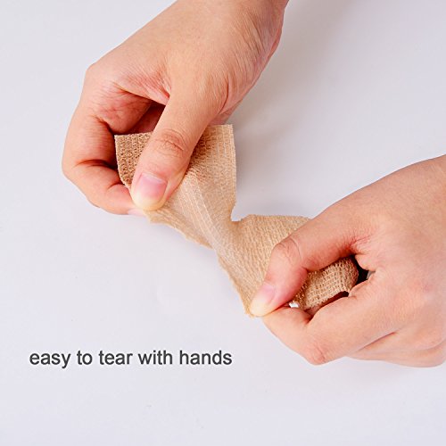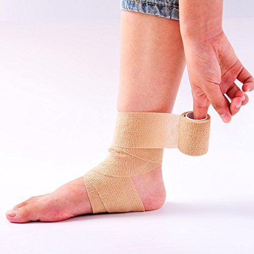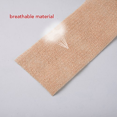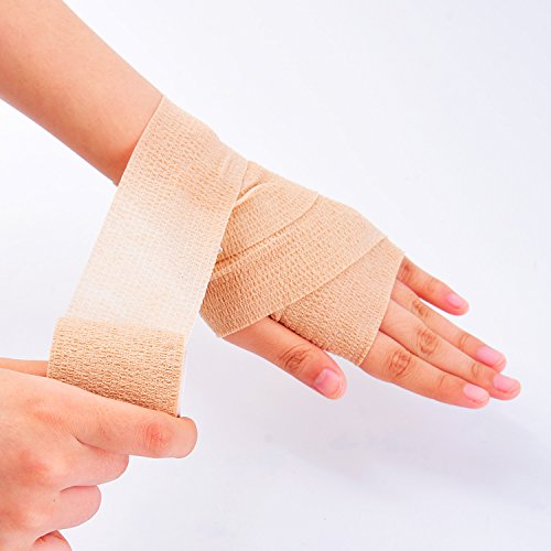 Mudder 12 pack 2 inch by 5 yards wrap tape sports tape self-adherent tape pressure wrap bandage rolls for wrist ankle Features: Self-adherent sports tape set: 60 Yards in total, very enough for your daily uses. Porous fabric material allows for good ventilation, your skin can breathe underneath, stretchy fabric is soft, lightweight, easy to wrap. Elastic bandages can stick to itself, does not stick to skin, hair or clothing, tape won't loosen and fall off easily, far better than the non-adhesive ones. Simply tear the tape from one edge, making it practical to carry with, easy to remove without residue on skin, convenient to use. Wide applications: These sports can supports and provides compression to ankles, knees, wrists and elbows, good for swelling, sprain and general soreness, helper for playful children and pets. Specifications: Width: 2 inch Total length: 60 yards (5 yards each roll) Material: porous fabric Color: skin color Quantity: 12 rolls Package includes: 12 Rolls of self-adherent sports tape 0