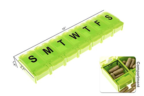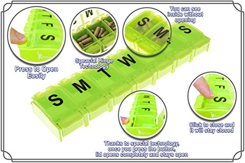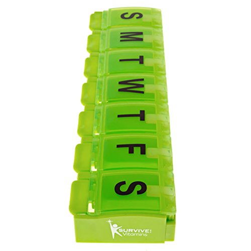 Studio : SURVIVE! Vitamins Publisher : SURVIVE! Vitamins Binding : Health and Beauty Product Description 7 DAY PUSH BUTTON PILL BOX ORGANIZER by SURVIVE! Vitamins Organize all your vitamins, supplements and pills for entire week fast and comfortably. Thanks to our weekly pill organizer you are able to hold your supplements and pills organized for whole week (one time a day). With this pill box 7 day you can easily push the button to open the lid and you can simply close it after by closing the lid back. It will click to stay closed. Big clear letters on the top of each lid of each compartment on the pill case make it easy for you to know what day are you at right now. It is made of durable nontoxic material. Buy 4 organizers at once and organize your entire month - it saves you a lot if time! GUARANTEE: 30 days money back! With a 30 Days Money Back Guarantee, You Have Nothing To Lose; Scroll Up To The Top, Click "Add to Cart" and Get Your LARGE 7 DAY PUSH BUTTON PILL ORGANIZER To Your Door ASAP before it gets sold out! 0