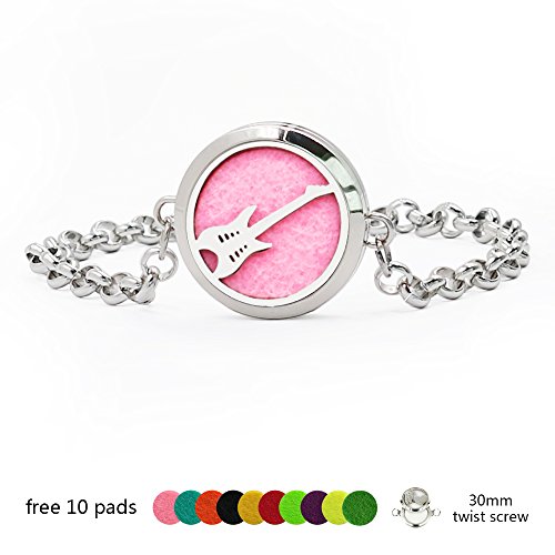 Silver Essential Oil Diffuser Bracelet - YouMiYa Guitar Style Aromatherapy Essential Oil Diffuser Perfume Locket Stainless Steel Bracelet Perfect Gifts For Women,Lover