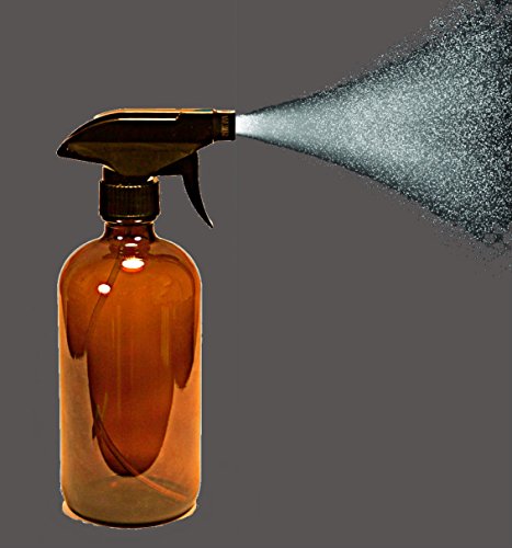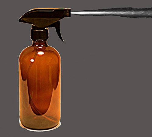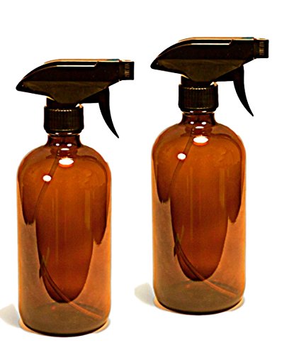 16 oz Amber Bottle with Black Spray Nozzle by Oils For Everything – Large Refillable Glass Container Ideal for SPA Beauty Care Massages Kitchen Cooking Cleaning – 2 Units Pack