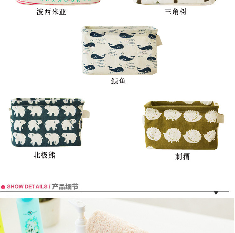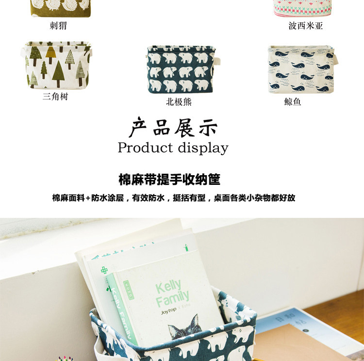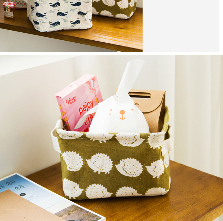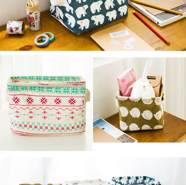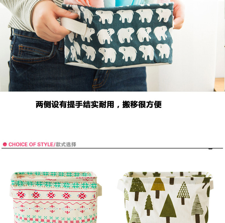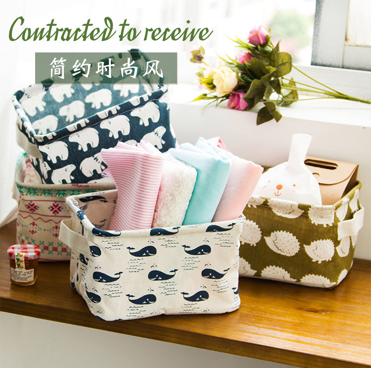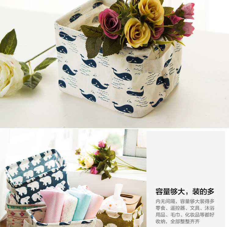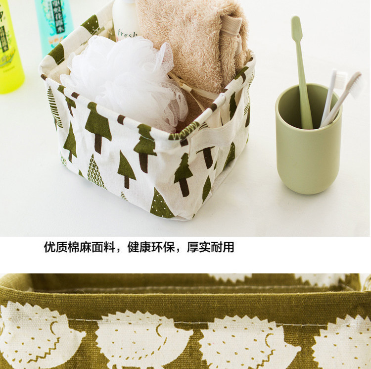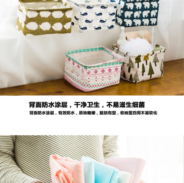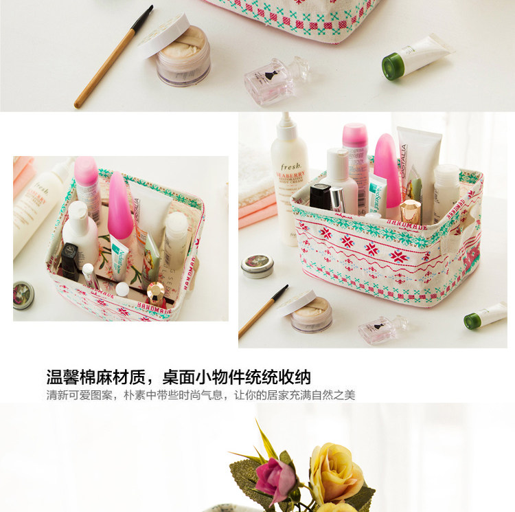 创意小清新棉麻防水桌面化妆品收纳盒办公储物收纳箱 杂物收纳筐