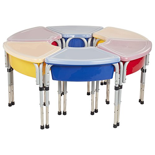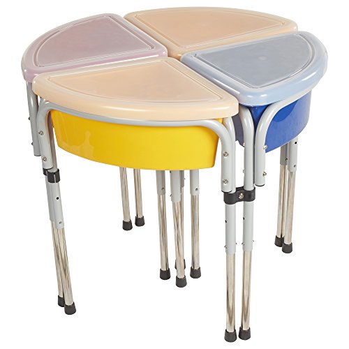 About Early Childhood Resources Early Childhood Resources is a wholesale manufacturer of early childhood and educational products. It is committed to developing and distributing only the highest-quality products, ensuring that these products represent the maximum value in the marketplace. Combining its responsibility to the community and its desire to be environmentally conscious, Early Childhood Resources has eliminated almost all of its cardboard waste by implementing commercial Cardboard Shredding equipment in its facilities. You can be assured of maximum value with Early Childhood Resources. Plastic construction with adjustable steel legs. Removable basin for easy cleaning with translucent lids. Legs are adjustable to 3 inches high. Dimensions: 30L x 14.75W x 20H inches.Feature