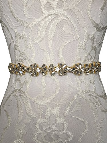 -. Title : Long gold color rhinestones bridal sashes crystal wedding sashes GC