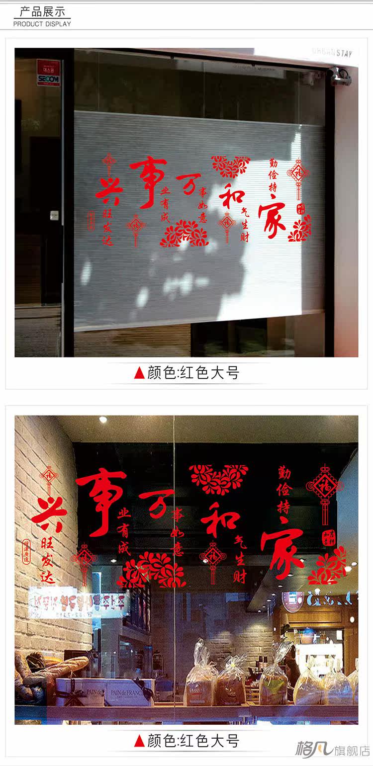 新年家和万事兴 贴卧室客厅沙发电视背景墙贴纸装饰贴玻璃门贴画