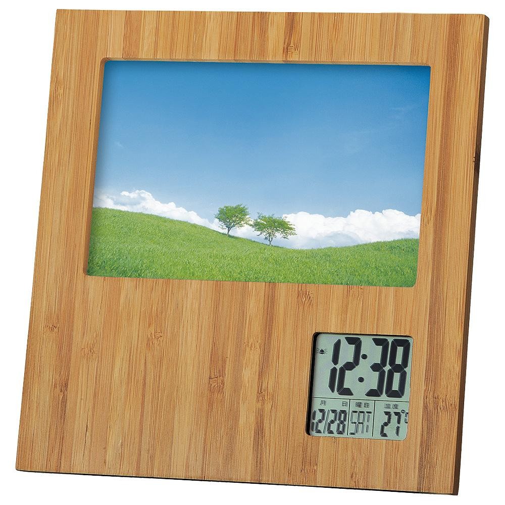 fk094igrjs天然竹を使用した竹のフォトフレームクロックです  サイズ 高200×幅190×奥行20mm 個装サイズ:21×20×3cm 重量 315g 個装重量:395g 素材・材質 ABS樹脂・竹 仕様 使用電源:単4乾電池×2 フォトサイズ:100×150mm 縦横兼用(時計部分90度回転仕様) 付属品 取扱説明書 保証書(保証期間:1年) 単4乾電池×2 製造国 中国 縦置き・横置きどちらでも使えます  天然竹を使用した竹のフォトフレームクロックです
