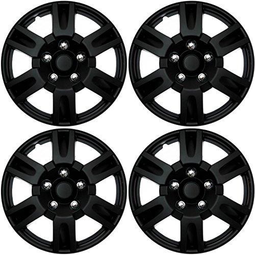 -. Brand : CoverTrend -. Feature : One set of 4 Hub Caps, each 16 Inch Black Matte Finish / Easy Snap In "clip-on" Retention Ring, Chrome Decorative Lug nuts. / Fits most 16" inch steel wheels, any make or model. / Made of ABS Plastic Trendy design, universal fit. -. ManufacturerPartsWarrantyDescription : 90 day replacement on parts. -. MPN : 616320072049 -. PackageQuantity : 1 -. PartNumber : 616320072049 -. ProductGroup : Automotive Parts and Accessories -. ProductTypeName : TIRE_AND_WHEEL_ASSEMBLIES -. Size : 16" -. Title : Covertrend (Set of 4) Black Matte Aftermarket 16" Inch Hubcaps for Nissan Altima Replica Wheel Covers