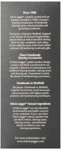 -. Feature : Used with Edwin Jagger shaving cream or soap Best badger hair generates rich lather for great shaving result / Medium size & weight ideal for all wet shavers / Softens and lifts beard hair for closer longer lasting shave / Handmade in England by Edwin Jagger / Comes with matching drip stand for storage and drying purposes