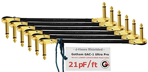 6 Units - Gotham GAC-1 Ultra Pro - 12 Inch - Low-Cap (21pF/ft) Guitar Bass Effects Instrument, S-Shaped Patch Cable with Gold Plated ¼ Inch (6.35mm) Low-Profile, Right Angled Pancake type Connectors