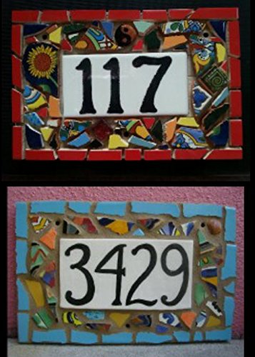 -. Feature : Customized and Hand Made To Order By Artist Amy Langer / Can Say Anything You Want / Tile Mosaic Art House/Address Number or Name Sign Plaque / Many Border Colors Available / Add Style, Class, and Fun to Your Home or Business