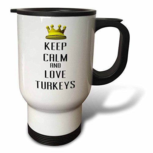 3dRose tm_121340_1 Gold Crown Keep Calm and Love Turkeys Travel Mug, 14 oz, White